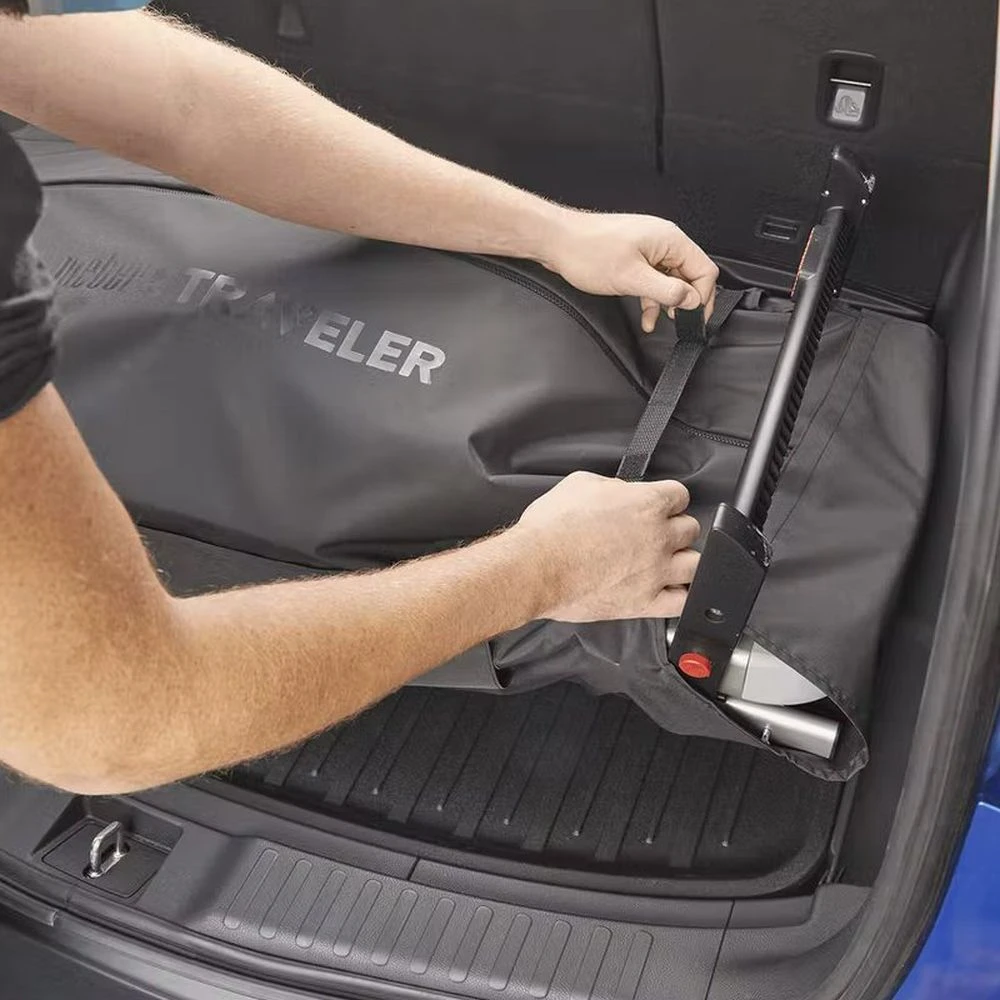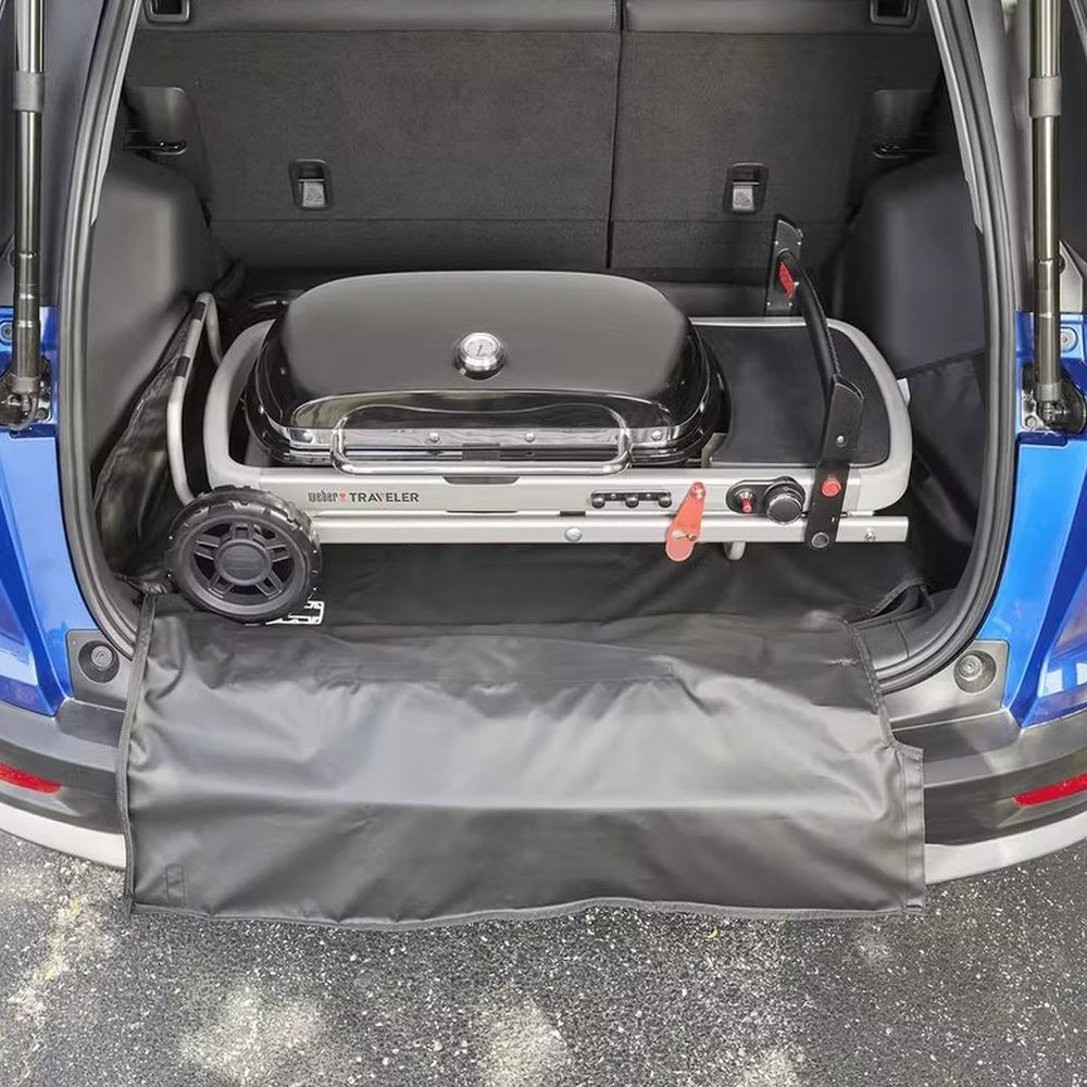 Protect your vehicleÆs interior from grease and grime when youÆre grilling on the go with the Weber Traveler grill. The cover is designed to fit snug around the Weber Traveler to contain grease and residue, allowing other items in your cargo space to remain clean during transport. The protector includes convenient storage for grilling tools and it folds flat and small for compact storage when not in use.